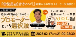 お申し込みページはコチラから!https://kamonobashi.peatix.com/ 突然ですが、あなたはこのような悩みを抱えていませんか? 「AI導入が進む中、今の仕事をこれからも続けていけるのか?」 「副業を […]