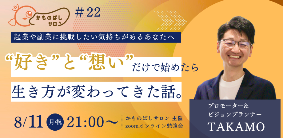 こんにちは、プロモーター&ビジョンプランナーのTAKAMO(タカモ)です!
