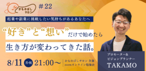今回の勉強会では、副業スタートから本業化までのリアルなプロセスを、成功談だけでなく迷いや葛藤も交えてお話いただきます。