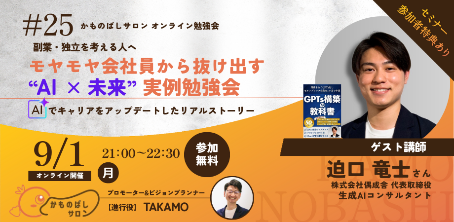 AIを味方につけて、自由自在にキャリアを選択できる状態まで未来を切り開いたリアルストーリーを、実例とともに語っていただきます。