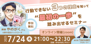 こんにちは!プロモーター&ビジョンプランナーのTAKAMOです。 今回は、かものばしサロン初の“単独セミナー”開催について、 その背景や私の想いを少しだけお伝えさせてください。 お申込ページ:https://ka […]