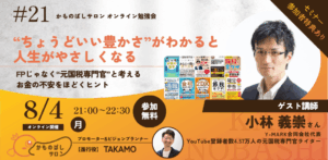 こんにちは、プロモーター&ビジョンプランナーのTAKAMO(タカモ)です! 今回は8月4日(月)の第21回『かものばしサロン オンライン勉強会』のお知らせをいたします! 『かものばしサロン』では、毎週月曜日の夜9 […]