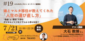 こんにちは、プロモーター&ビジョンプランナーのTAKAMO(タカモ)です! 今回は7月14日(月)の第18回『かものばしサロン オンライン勉強会』のお知らせをいたします! 『かものばしサロン』では、毎週月曜日の夜 […]